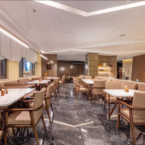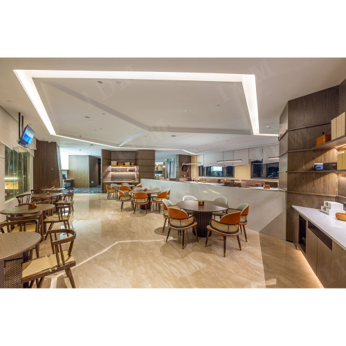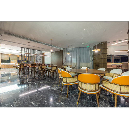 Marco de madera maciza seleccionada de alta densidad y telas resistentes al desgaste de alto grado, con una textura elegante y un rendimiento súper de carga. Las características duraderas lo convierten en la primera opción para los muebles de comedor del hotel , ya sea un uso comercial de alta frecuencia o una cena diaria familiar, puede mantenerlo tan nuevo como nuevo.